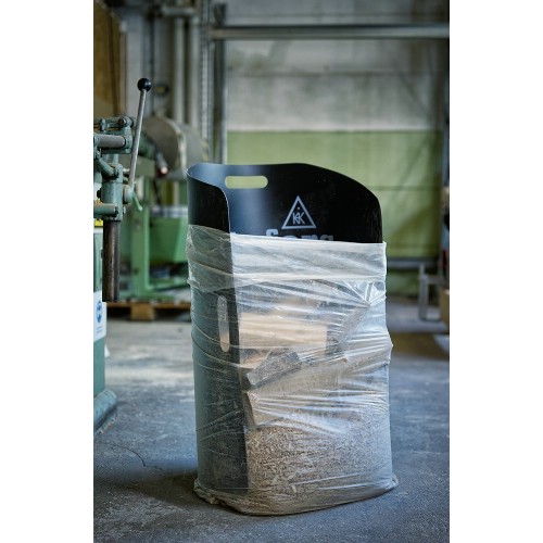 Platt och smidig sopsäckshållare som är lätt att transportera, fälla upp och ta i bruk. Passar vanliga sopsäckar från 65 till 240 liter och ger en stabil, upprätt konstruktion som förenklar både fyllning och tömning av avfall. Passar exempelvis på en byggarbetsplats, i en verkstad eller i trädgården. Tillverkad av 20% återvunnen PP-plast. Tjocklek 2 mm.
