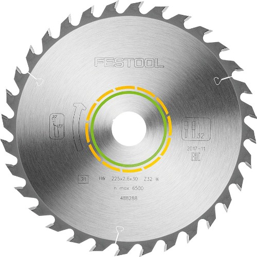 Standardutrustning: Sågklinga Ø 225 mm Z32, splitterskydd, vinkelanslag WA, utsugsset CS 70 AB, påskjutare och insexnyckel 6 mm.