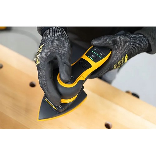 Med en höjd på endast 10 cm ger verktygets kompakta och mycket låga profil en hög manövrerbarhet och hjälper till att leverera en exakt och effektiv slipprestanda. Den ergonomiska designen, låga vibrationer och låg ljudnivå säkerställer att slipmaskinen kan användas bekvämt under långa perioder utan trötthet.