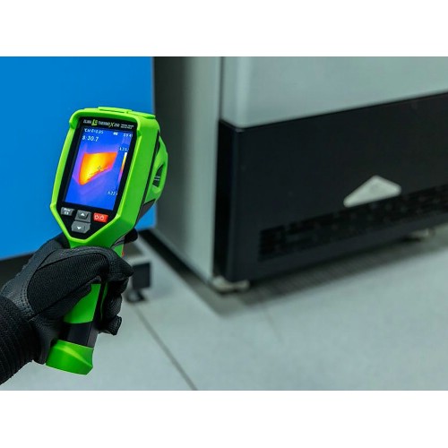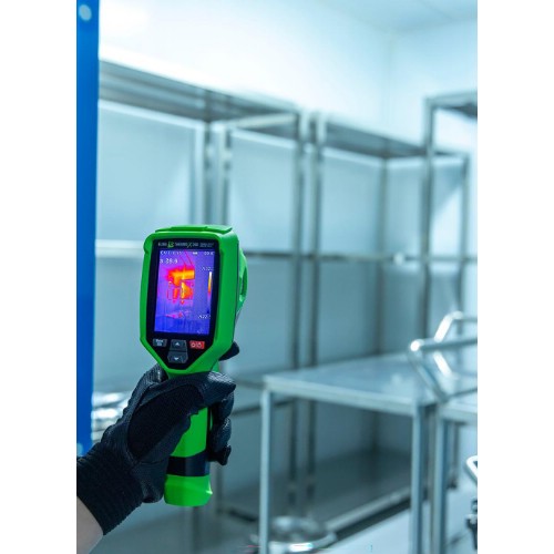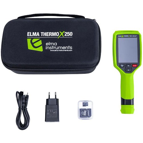 Elma Thermo X250 är en smart kompakt värmekamera, med en upplösning på 256x192 pixlar = 49 152 pixlar. Kameran är superlätt att använda med peka-och-skjut-funktionalitet, fast fokus och utan en massa krångliga inställningar. Thermo X250 tar en värmebild tillsammans med en 2MP visuell bild, och lagrar båda bilderna på SD-kortet i kameran. Bilderna kan överföras till en dator via en USB-C-kabel, eller genom att sätta in SD-kortet i datorn. En iOS- eller Android-app kan laddas ner gratis, och bilderna kan överföras trådlöst till en smartphone eller surfplatta via WiFi. Du kan ladda ner en användarvänlig analys- och rapportmjukvara gratis på vår hemsida, och med Thermo X250 är det enkelt att dokumentera temperaturrelaterade uppgifter på ett professionellt sätt - utan den stora investeringen och utan att ha mycket erfarenhet av termografins mysterier . Det inbyggda uppladdningsbara Li-ion-batteriet laddas via USB-C, laddare ingår. Elma Thermo X250 levereras klar att användas i en låda med USB Type-C-kabel, laddare, 32GB SD-kort och manual.