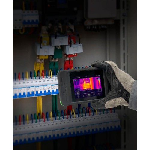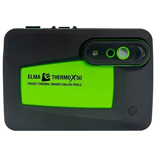 Elma Thermo X50 är en smart kompakt värmekamera i fickformat, med en upplösning på 256x192 pixlar = 49 152 pixlar. Kameran är superlätt att använda med peka-och-skjut-funktionalitet, fast fokus och utan en massa krångliga inställningar. Thermo X50 tar en värmebild tillsammans med en 2MP visuell bild, och lagrar båda bilderna på SD-kortet i kameran. Bilderna kan överföras till en dator via en USB-C-kabel, eller genom att sätta in SD-kortet i datorn. En iOS- eller Android-app kan laddas ner gratis, och bilderna kan överföras trådlöst till en smartphone eller surfplatta via WiFi. Du kan ladda ner en användarvänlig analys- och rapportmjukvara gratis på vår hemsida, och med Thermo X50 är det enkelt att dokumentera temperaturrelaterade uppgifter på ett professionellt sätt - utan den stora investeringen och utan att ha mycket erfarenhet av mysterierna inom termografi. Det inbyggda uppladdningsbara Li-ion-batteriet laddas via USB-C - laddare kan köpas separat, eller så kan du använda datorns eller en vanlig Smartphone-laddare med USB-C-kabel. Elma Thermo X50 levereras färdig att använda i en låda med USB Type-C-kabel, 32GB SD-kort, handledsrem och manual.
