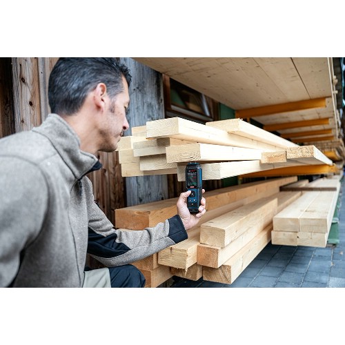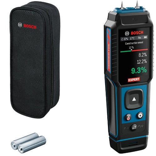Robust fuktmätare som är idealisk för hantverkare, målare, byggnadsinspektörer, fastighetstekniker och rörmokare för att bedöma fuktnivåer och förhindra skador eller mögeltillväxt. Ingår i Bosch Expert-sortiment. Mäter fukthalten i 37 olika typer av trä och 10 typer av byggmaterial och registrerar temperatur och relativ luftfuktighet. Stor och tydlig 2,4" LCD-färgskärm.