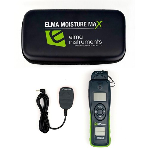 Elma Moisture Max levereras med extern stiftprob, manual och väska för säker förvaring.