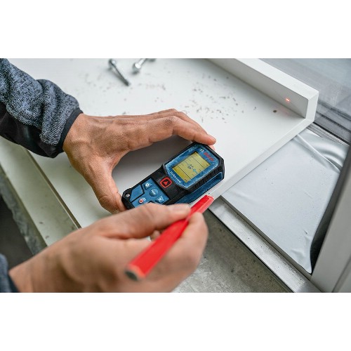 Mångsidig avståndsmätare med röd laser. Sju mätlägen och automatiska beräkningar för längd, area och volym. Minnesfunktion för de senaste 10 mätningarna. Lättanvänd med intuitiv knappsats och ljusstark färgdisplay. Robust design med stötdämpande hölje som tål fall på upp till 1,5 m. Drivs med 2 st 1,5 V LR6 (AA) batterier. Kompatibel med Li-Ion batteripaket.