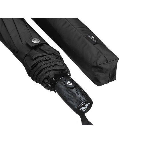 Smidigt hopfällbart paraply med 3-delat glasfiberskaft och stålkonstruktion. Automatisk uppfällning och stängning. Handtag i ABS plast. Fodral medföljer.